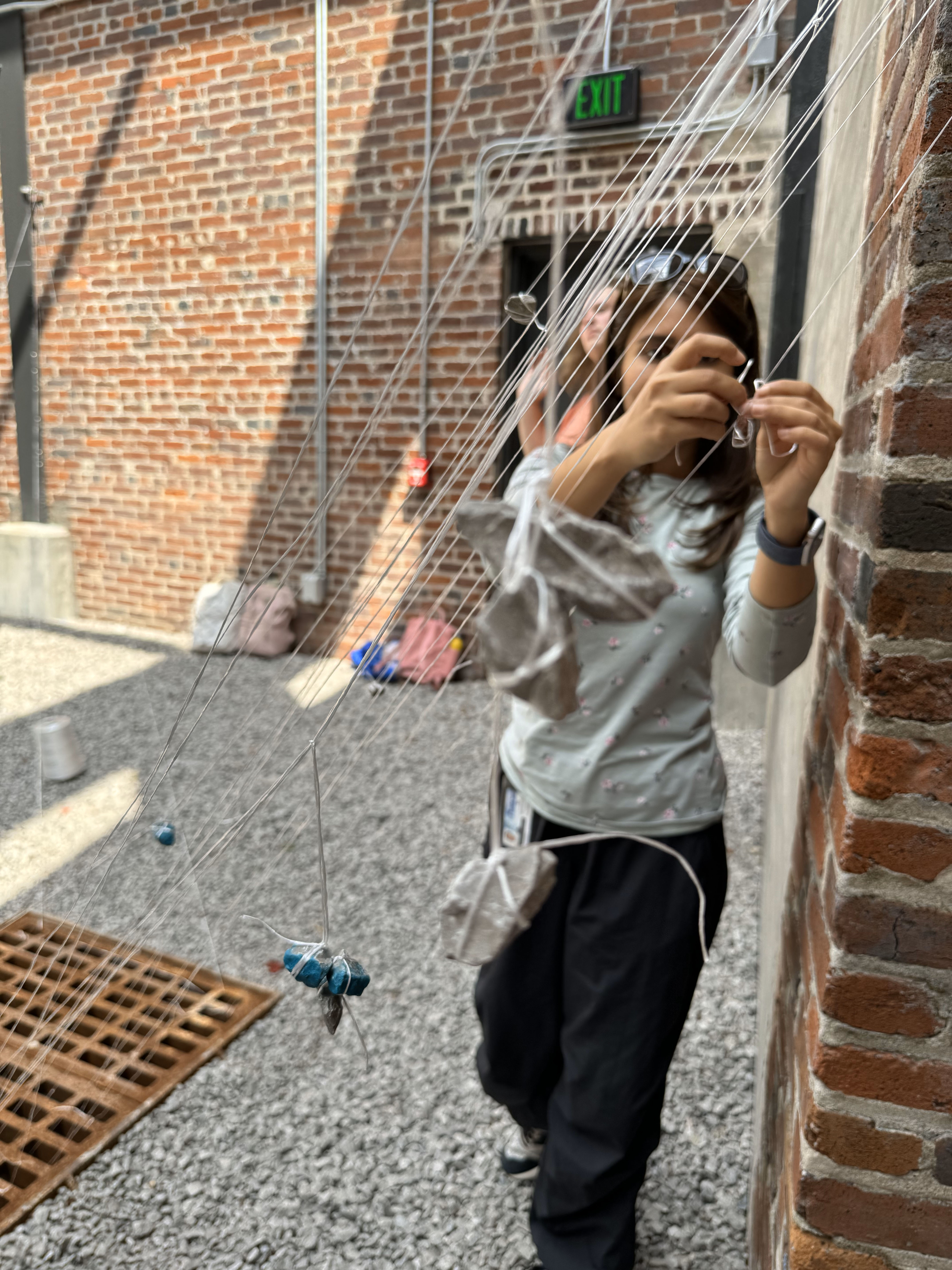 During this exercise, students were introduced to readings and materials and had the opportunity to play and experiment freely in the Maker Yard. They gained familiarity with the installation space and were encouraged to tap into a sensorial awareness of their surroundings. Materials were introduced without specified outcomes, fostering a playful, experimental, and generative phase of the calendar. Students were required to take numerous photographs of their discoveries and use these elements as catalysts for the large collaborative installation.