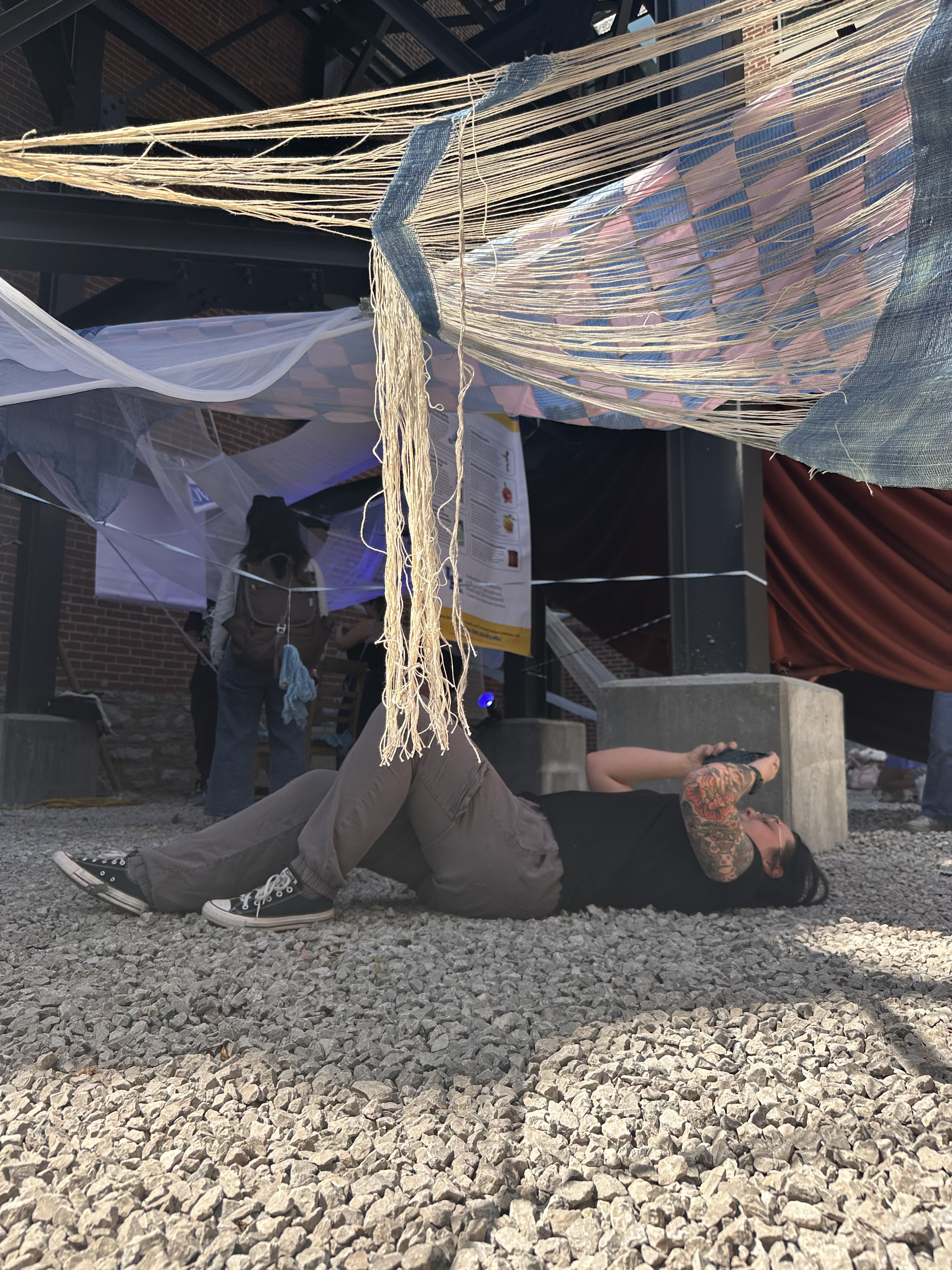 This multi-disciplinary course worked across interior design, fiber, and digital media to explore the design and making process of spatial installations. From the perspective of studio art, incorporating textile, soft sculpture, and intermedia studies, and space-making principles of Interior Design and Architecture, we worked both collectively and individually to develop a full-scale installation at the Gray Design Building at the University of Kentucky in Fall 2024.